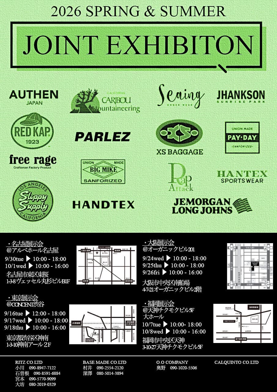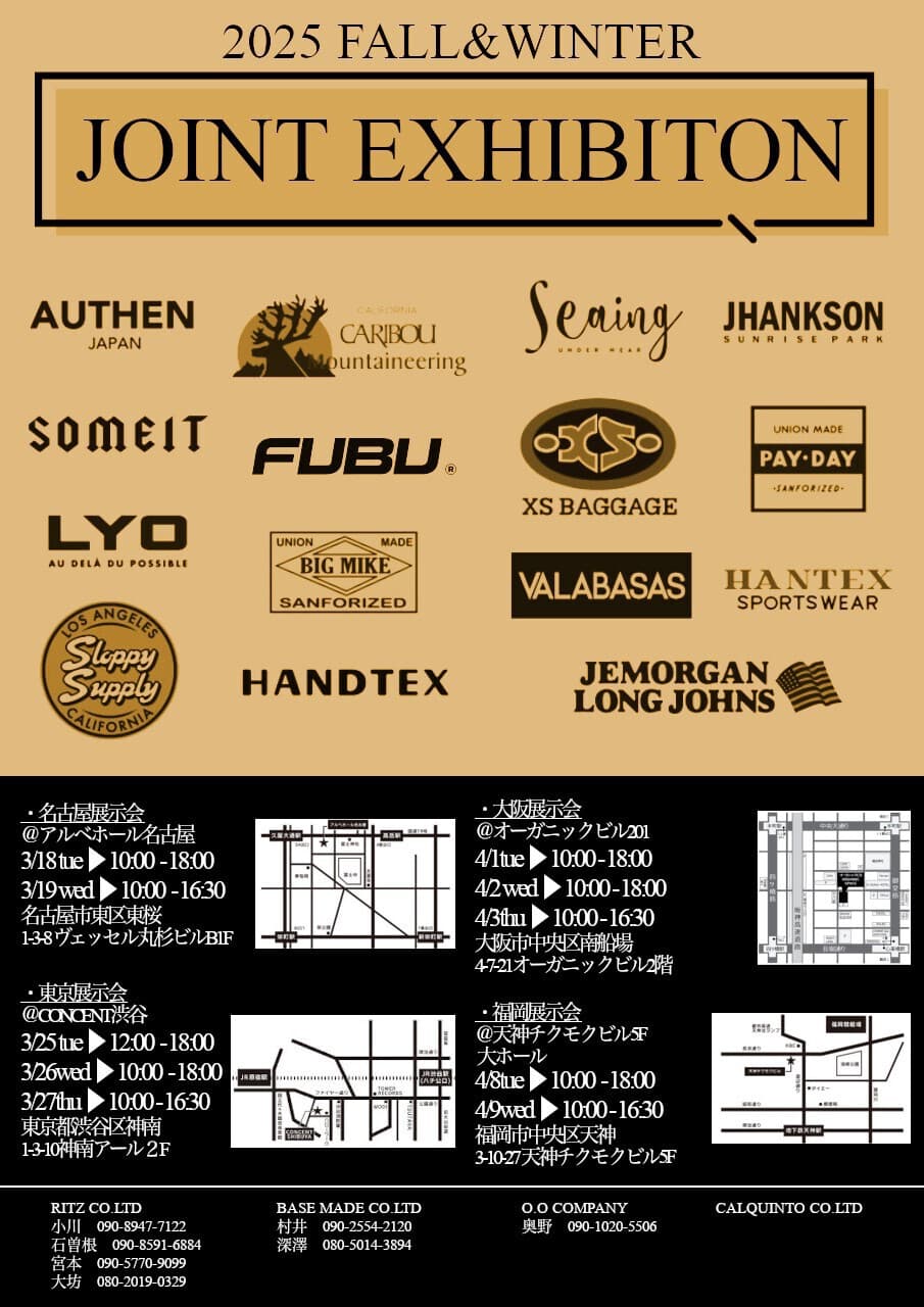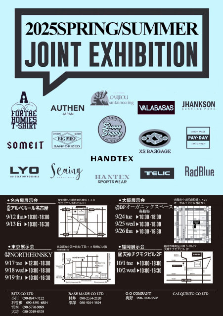 この度、下記日程にて東京・名古屋・大阪・福岡の各会場で25SS合同展示会を開催致します。
