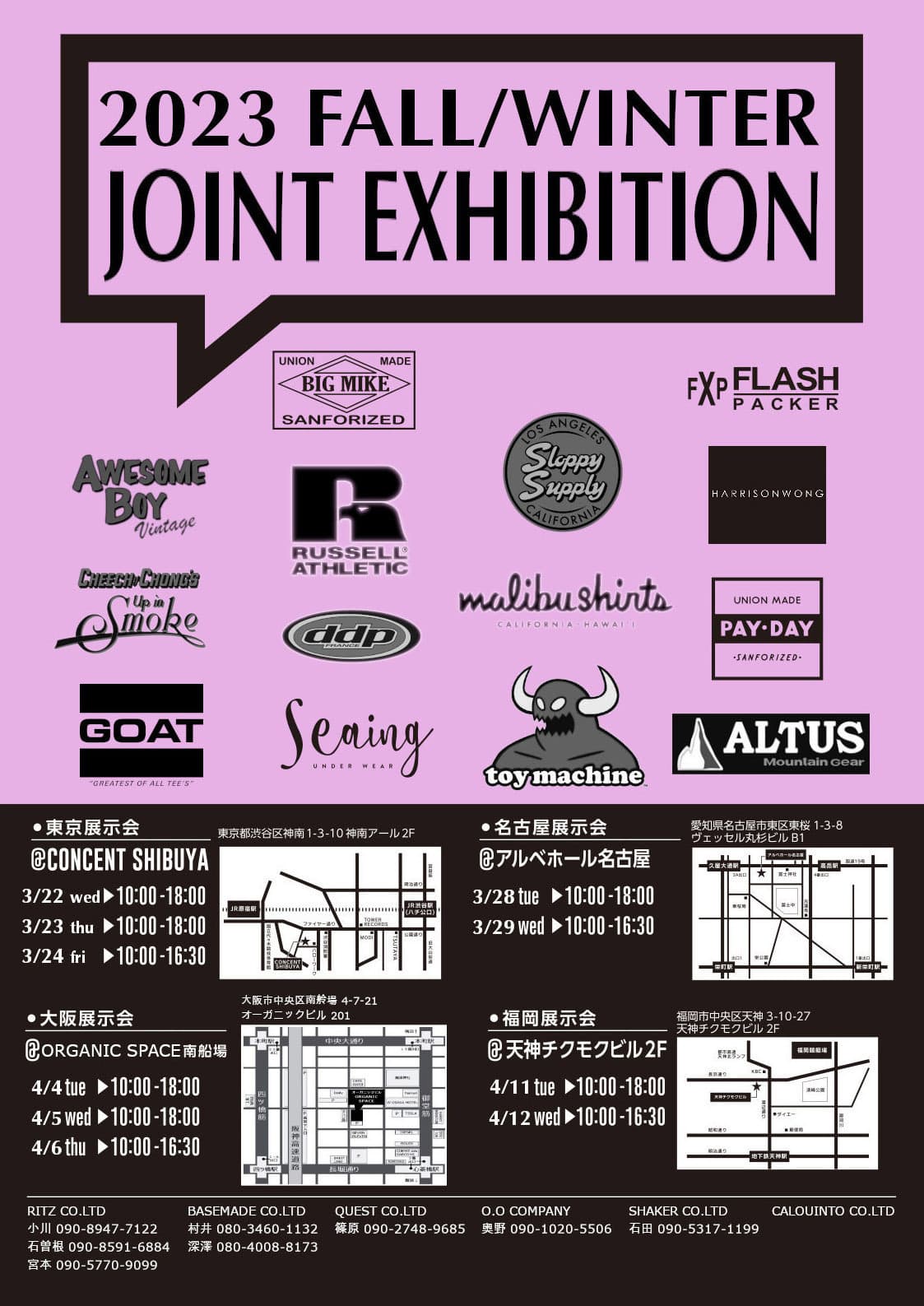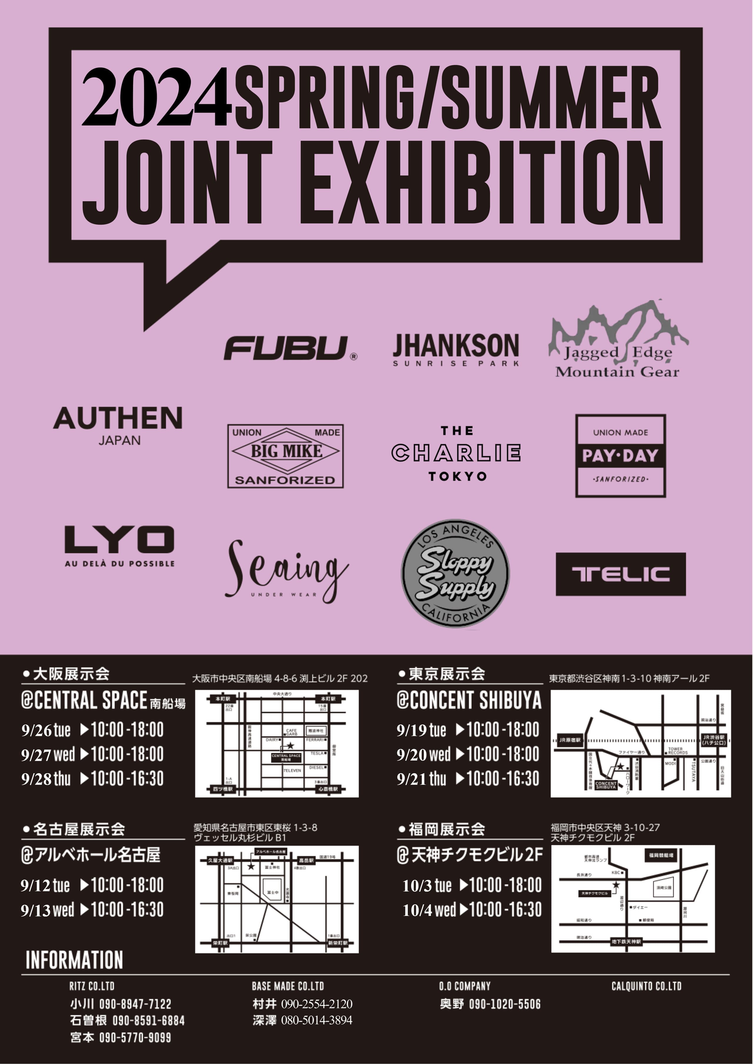 この度、下記日程にて東京・名古屋・大阪・福岡の各会場で【2024 SPRING/SUMMER JOINT EXHIBITION】合同展示会を開催致します。