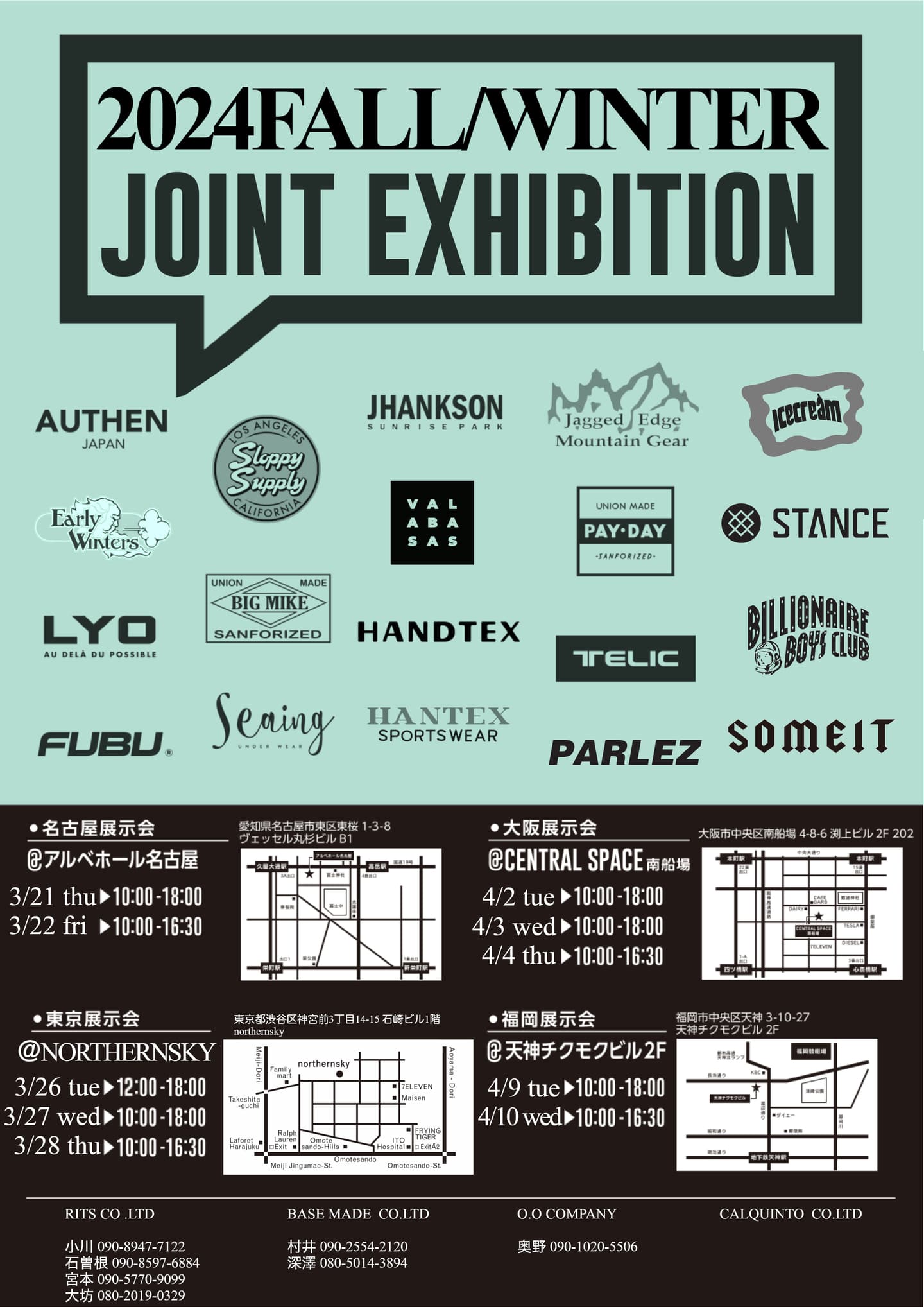 この度、下記日程にて東京・名古屋・大阪・福岡の各会場で【2024 FALL/WINTER JOINT EXHIBITION】合同展示会を開催致します。